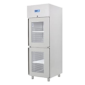 * GN 2/1 raflı çift cam kapılı buzdolabı